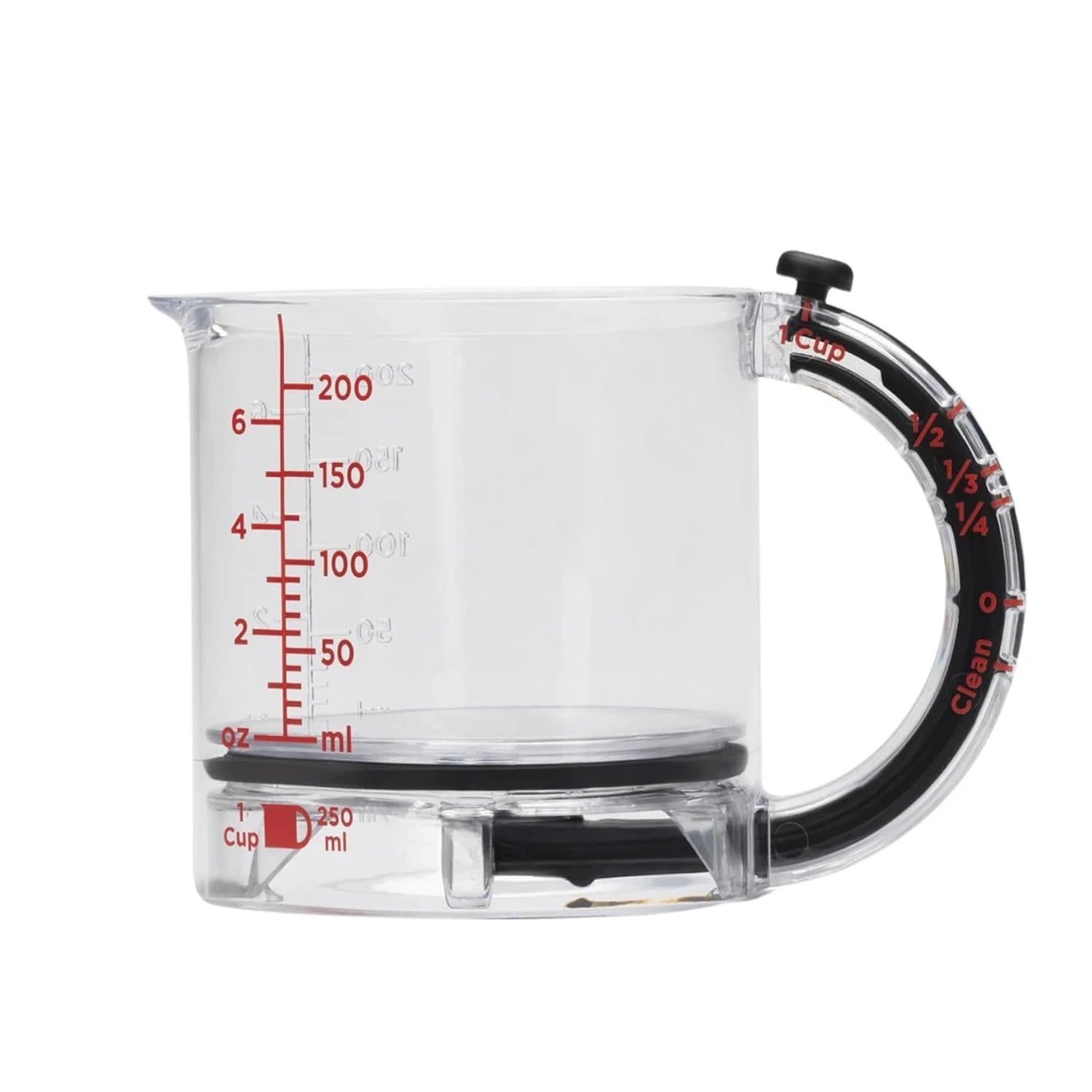 Adjustable Mechanism: Easily slides and locks into position, allowing you to measure various liquid and dry ingredients with a simple push or pull.